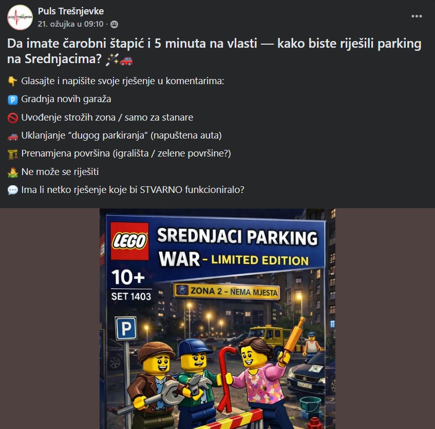 “Da imate čarobni štapić i 5 minuta vlasti – kako biste riješili parking na Srednjacima?”